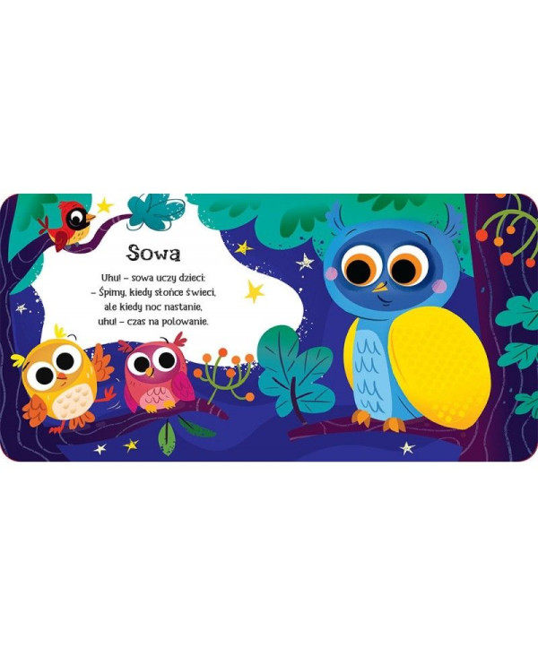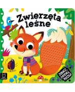 Drogie dzieci, czy już wiecie, co się w leśnym dzieje świeci? Zapraszamy w książki chaszcze, gdzie się futra zwierząt głaszcze! Ta książeczka sensoryczna stymuluje zmysły malucha. Dziecko ogląda ilustracje zwierząt, poznaje i zapamiętuje ich nazwy oraz słucha wierszyków i dotyka silikonowe wstawki o różnych fakturach. Dotykając tych silikonowych fragmentów, dziecko uspokaja emocje, wycisza się i rozluźnia. Na starannych i odpowiednich dla małych dzieci kolorowych ilustracjach dziecko spotka się z lubianymi przez dzieci leśnymi zwierzętami: lisem i wilgą, wiewiórką i jeżem, motylem i żabkami, sowami, bobrem i rybkami, sarenką i zającem. Dodatkowym walorem książki są krótkie zabawne wierszyki o zwierzętach z ilustracji – doskonałe do ćwiczenia pamięci dziecka oraz wzbogacające jego słownictwo. Ta książka oprócz walorów poznawczych i zabawowych jest przede wszystkim doskonałą pomocą do ćwiczeń sensorycznych i motoryki małej malucha. „Zobacz, dotknij, poczuj” – doskonały sposób na udaną zabawę i rozwój dziecka. Książka przeznaczona jest dla dzieci w wieku od 0 do 3 lat.