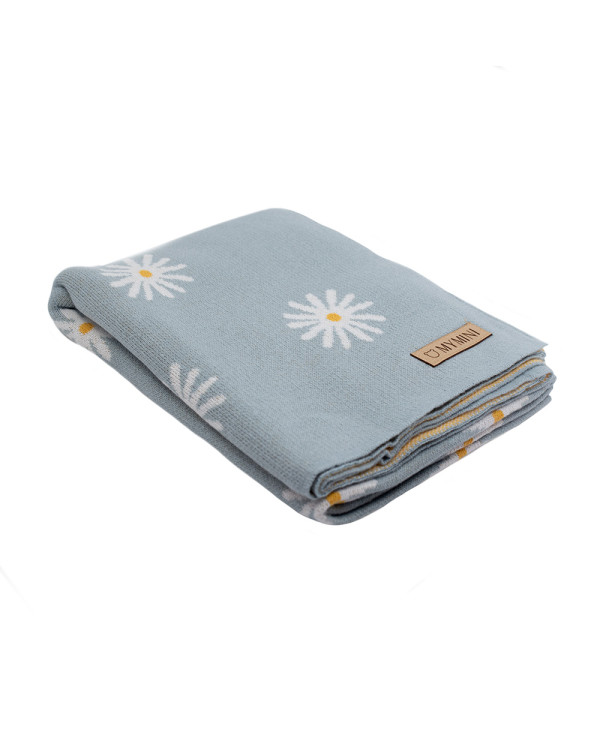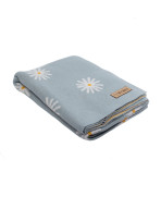 Bawełniany koc turkusowo błękitny w stokrotki dla maluszka
