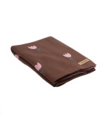 Bawełniany koc brązowy w różowe tulipanki dla maluszka