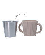 To, co wyróżnia ten kubek, to trzyfunkcyjna konstrukcja oraz wyjmowany wkład ze stali nierdzewnej. Dzięki temu jeden kubek może pełnić kilka ról i „rosnąć” razem z dzieckiem.