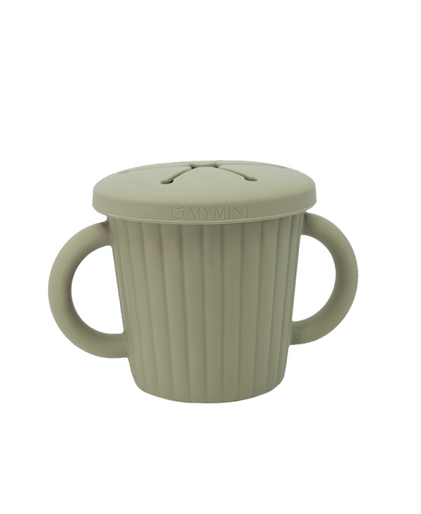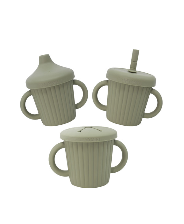 Trzyfunkcyjny kubek silikon + stal nierdzewna - oliwkowy